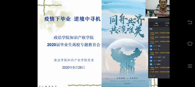 本网讯 近日,政法学院、知识产权学院举行2020届毕业生离校线上教育大会,学院负责毕业生工作的教师、辅导员、2020届返校毕业生参加。