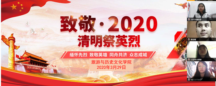 本网讯 清明节临近,为铭记先烈,弘扬民族精神和革命传统,3月29日,旅游与历史文化学院党委组织教师和学生党支部开展“缅怀革命先烈 致敬时代英雄”线上主题党日活动,60多名师生党员在线参加。